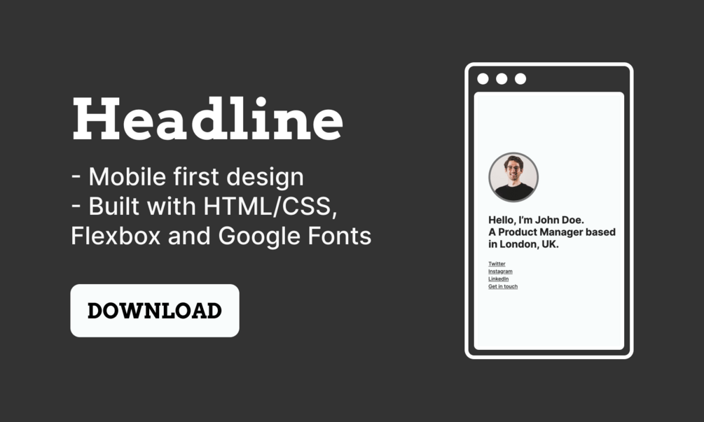 Headline is a landing page template built with vanilla HTML & CSS only (no framework) to display your personal brand online.